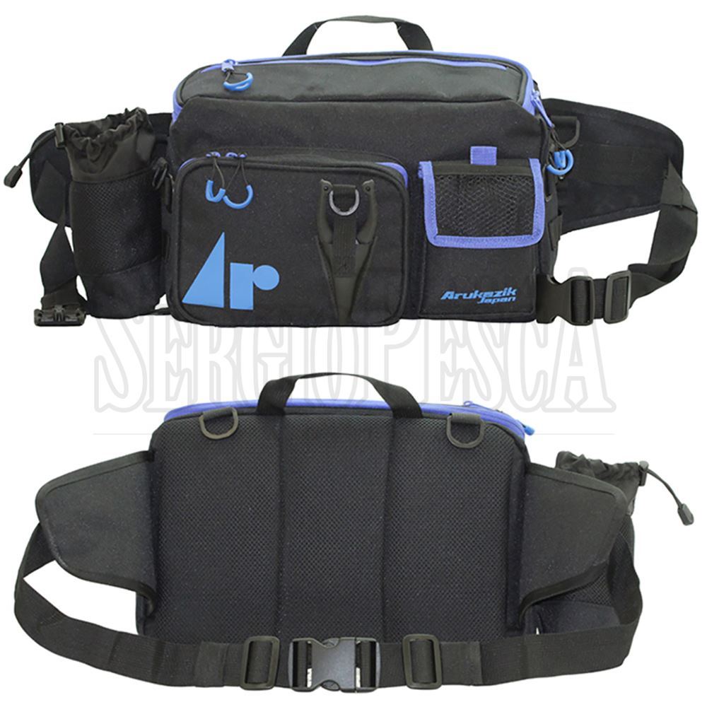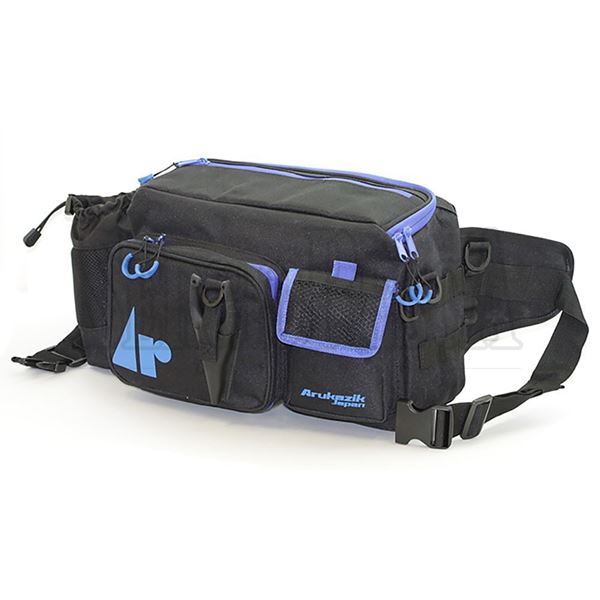 La All In Bag della Arukazik è un marsupio studiato appositamente per il Light Game! Presenta un vano principale molto capiente che consente di trasportare tutta la propria attrezzatura divisa in piccole custodie o scatolette (non incluse). Nella parte superiore presenta una tasca accessibile sia dall'interno che dall'esterno dove poter inserire la minuteria pronta all'uso come moschettoni, testine piombate, piombini, ecc... Mentre nella parte frontale è è presente una tasca più grande con porta-pinza frontale ed una più piccola. Nella parte laterale destra è presenta un pratico porta-bottiglia. La parte posteriore è composta da un materiale morbido che garantisce estremo comfort durante tutta la battuta di pesca. Tutte le cerniere sono complete di apposito laccio (Zip Tab) che consentono l'apetura/chiusura delle tasche anche con un solo dito.