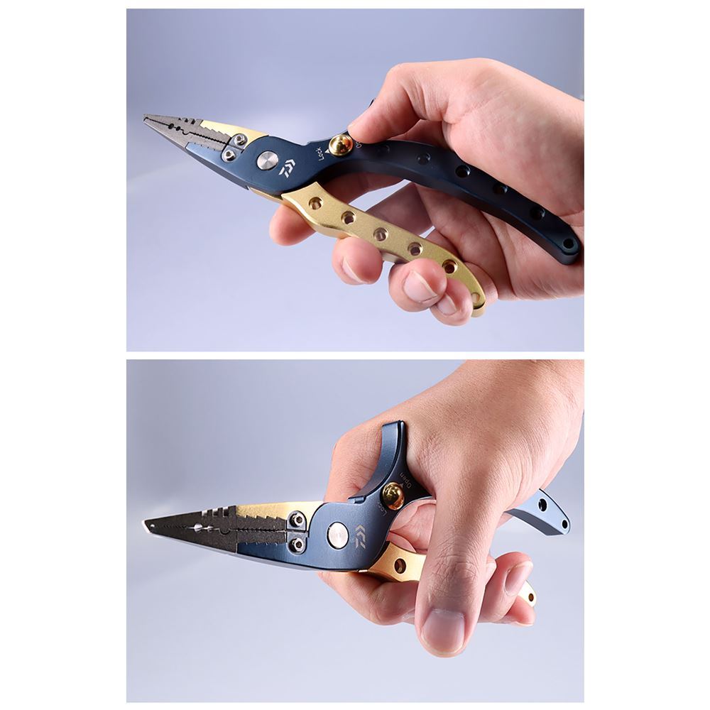 L'Aluminum Pliers Alpha 200H Lock LG with Case della Daiwa è una pinza leggera e resistente, progettata per i pescatori che cercano precisione e praticità durante l'azione di pesca. Realizzata in alluminio leggero (circa 135 g) con trattamento anticorrosione al fluoro, offre grande durata anche in ambiente marino. La punta è studiata per lavorare facilmente con split ring da #2 a #7, rendendola ideale per la sostituzione rapida di ancorette e artificiali. Il tagliafilo in tungsteno consente di tagliare senza sforzo anche trecciati PE, mentre il pratico sistema di blocco one-touch permette di trasportarla in sicurezza. Consigliata per diverse tecniche come Spinning in Mare, Shore Jigging e pesca dalla barca, è un accessorio indispensabile per ogni pescatore moderno.