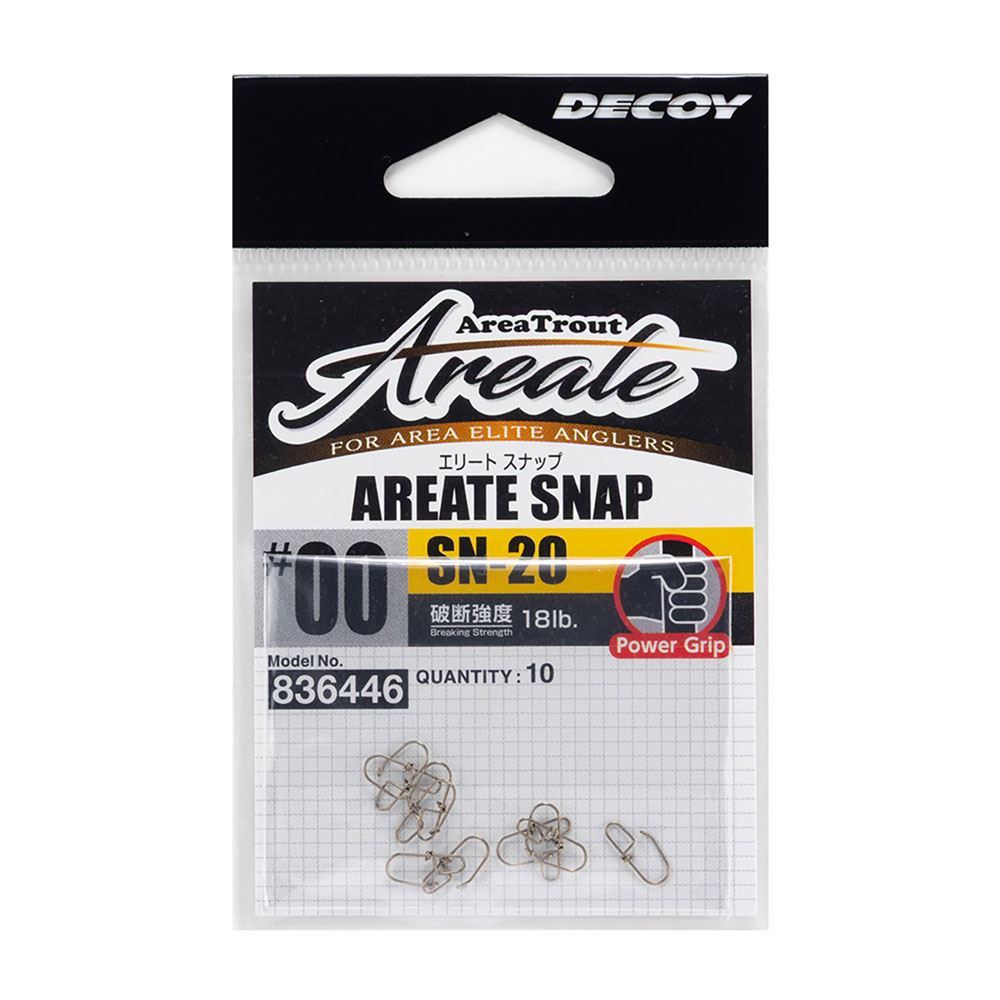 L'AREATE Snap SN-20 della Decoy è lo snap specifico per Trout Area sviluppato con le più avanzate tecnologie giapponesi per garantire leggerezza, resistenza e massima praticità. Realizzato totalmente in Giappone in acciaio inox ad alta durezza con trattamento termico, offre elevata elasticità e riduce la fatica del metallo nel tempo. Il design in super fine wire con lavorazione Power Grip assicura grande tenuta pur mantenendo un profilo sottile, ideale per spoon e piccoli plug. Il sistema Inside Lock previene grovigli e aperture accidentali, migliorando affidabilità e performance. Perfetto per agonisti e appassionati che cercano precisione e sicurezza nella pesca alla trota.