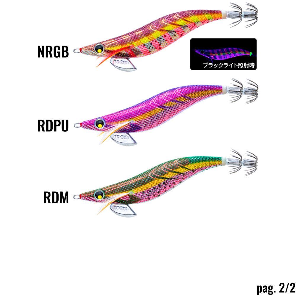 Colore classico per la pesca notturna: base rossa e rivestimento verde, studiato per enfatizzare la silhouette. Il corpo non luminoso è indicato per calamari che diffidano delle esche con emissione luminosa.