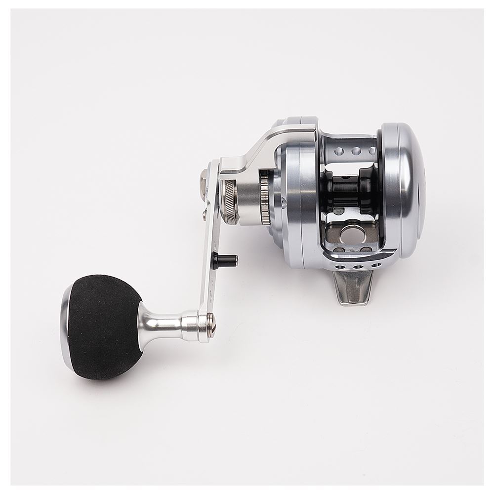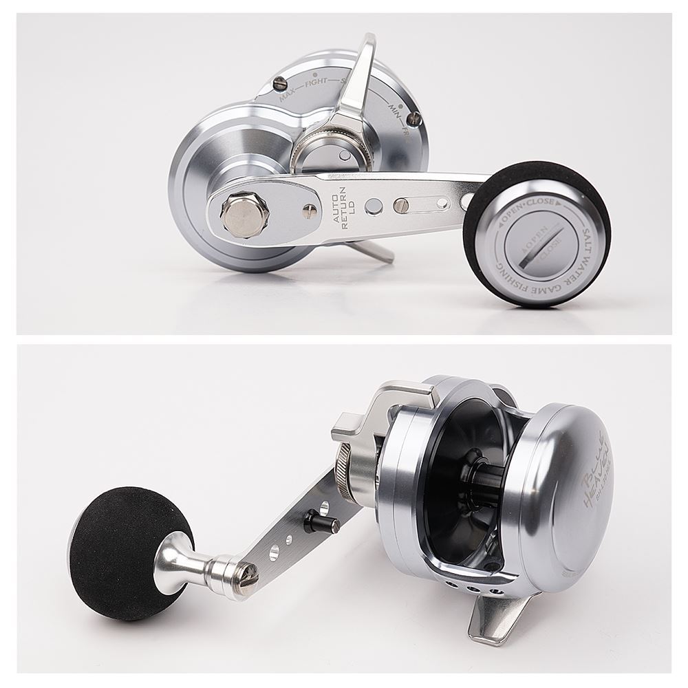 Il Blue Heaven L30Hi della Studio Ocean Mark è un mulinello rotante, il migliore sul mercato mondiale! Finalmente nella versione 30, la misura perfetta per affrontare tutte le nuove tecniche verticali come lo Slow Jigging! Un rotante leggero e potente che permetterà di combattere anche contro prede come Tonni e Ricciole, prede fino anche fino a 50kg! Grazie all'utilizzo dei migliori materiali possibili, compresi tutti gli ingranaggi e i cuscinetti, presenta una serie di innovazioni mai viste su altri mulinelli. Il telaio è ad altissima resistenza in alluminio a6061-T6, risulta resistentissimo ad urti, trazioni, ecc... Tutte le parti interne sono acciaio inox, compresi albero e cuscinetti. La prima innovazione sta nella leva che presenta 5 posizioni differenti: Free, bobina libera per la discesa del filo; Min, posizione minima della frizione; Strike, posizione da utilizzare durante la pesca; Fight, posizione da mettere durante il combattimento con la preda; Max, frizione completamente chiusa! Un'altra innovazione è il riposizionamente istantaneo della frizione dal Free allo Strike. Infatti, una volta abbassta la leva in Free e far scendere l'esca sul fondo sarà semplicissimo riposizionare la leva in Strike con solo mezzo giro di manovella grazie ad una piccola asta inserita nella movella. Un mulinello con frizione a leva che unisce la potenza di un mulinello con frizione a leva e la praticità di uno con frizione a stella e leva di discesa del filo (tipo Ocea Jigger). Un mulinello unico, il top, il migliore sul mercato senza dubbio!Viene fornito con un riduttore, che permette di non fare il fondo di nylon, ma di mettere direttamente il PE.Riduttore: PE2/300m - PE1.5/450m - PE1.2/550m.
