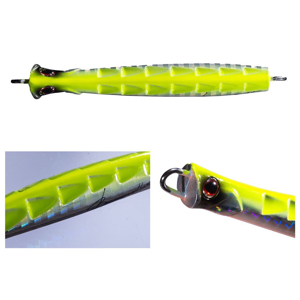 Il Bonneville della O.S.P. è un particolare metal jig ad alte prestazioni progettato in Giappone specificamente per la pesca al Sawara (sgombro spagnolo) e che può essere utilizzato anche per Palamite, Alletterati, Tonnetti, Lampughe, Sgombri e Ricciole di branco. Il Bonneville è stato sviluppato per massimizzare tre elementi fondamentali: lunga distanza di lancio, affondamento rapido e recupero ad altissima velocità. Con i suoi 45 grammi di peso, questo artificiale è studiato per coprire grandi distanze e raggiungere rapidamente la profondità operativa, permettendo di sfruttare al meglio ogni finestra di attività del pesce. La sua struttura innovativa combina un design idrodinamico avanzato, denominato Gouged Design, e una particolare conformazione frontale tipo flat cup, che riducono drasticamente la resistenza dell'acqua durante il recupero veloce. Questo consente di mantenere un'azione fluida e costante senza affaticare l'angler, rendendo il Bonneville ideale per lunghe sessioni di pesca in cui velocità e continuità fanno la differenza. In acqua, il jig genera flussi e vortici unici, capaci di attirare anche i predatori più attivi, mantenendo al tempo stesso una traiettoria stabile e controllata grazie al baricentro arretrato. Questa configurazione migliora anche la gittata in lancio e garantisce una discesa rapida dalla coda, riducendo al minimo i problemi durante l'utilizzo e aumentando l'efficacia nelle fasi più frenetiche della pesca. Equipaggiato con ancorette robuste misura #1, è perfettamente adatto alle tipiche mangiate aggressive del Sawara o di altri pelagici, assicurando ferrate solide e riducendo il rischio di slamate anche con pesci di taglia importante. Il Bonneville si distingue inoltre per la sua versatilità: eccelle nel recupero ad alta velocità, mantenendo un movimento lineare senza rotazioni anche a ritmi estremi, e si presta anche a tecniche come lo skipping, creando una scia di bolle altamente attrattiva. Progettato sotto la supervisione di esperti, rappresenta una soluzione altamente tecnica e affidabile per tutti i pescatori che cercano prestazioni elevate, resistenza e massima efficacia in mare.