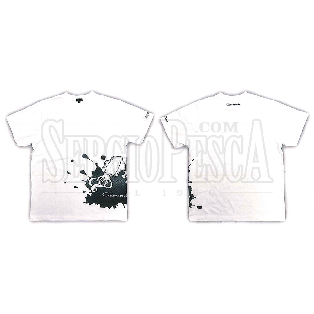 La Calamaretti Graphic T-Shirt della Graphiteleader è una maglietta in cotone per tutti gli amanti dell'Eging Game. Il colore è bianco con disegno di un Aorika (calamaro giapponese) e la scritta "Calamaretti". Nel retro presente la scritta "Graphiteleader" metre sulla manica sinistra la scritta "OLYMPIC", azienda produttrice del marchio Graphiteleader.