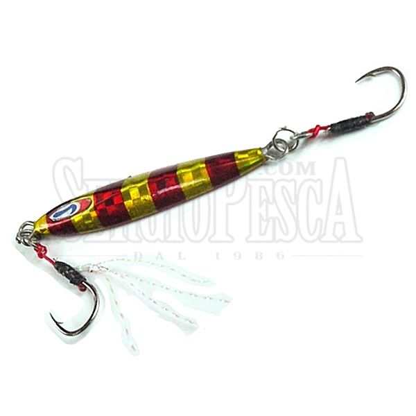 Jackall’s Chibi Meta Type-II is the new and small jig designed for light game! A high quality product, that has a good casting ability and a very attractive movement; In fact, ther Chibi Meta Type-II has a flat shape in the bottom that gives the jig an oscillating and vibrating action. It’s ideal to attract mackerels and small predators. It comes with 2 small assist hooks, one on the head with a small plume and one on the tail without plume.