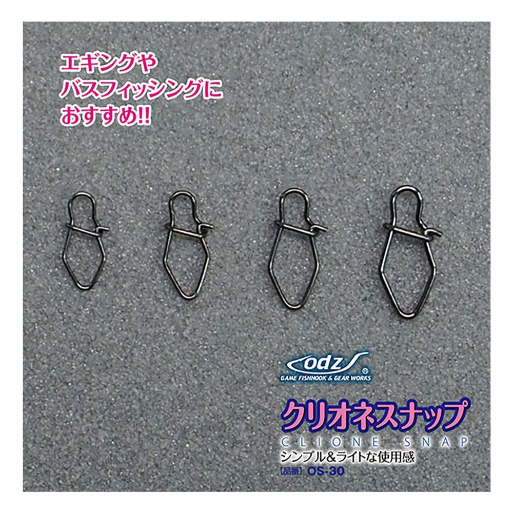 Il Clione Snap OS-30 della Odz è è uno snap da spinning leggero e resistente, progettato per garantire massima affidabilità e libertà di movimento all'esca. La speciale forma della punta concentra la forza di trazione in un unico punto, migliorando solidità e sicurezza durante il combattimento. Ideale per tecniche che prevedono movimenti laterali dell'artificiali tramite l'azione della canna, assicura performance precise e naturali. Perfetto per lo spinning in mare e acqua dolce, unisce semplicità, praticità e alte prestazioni.