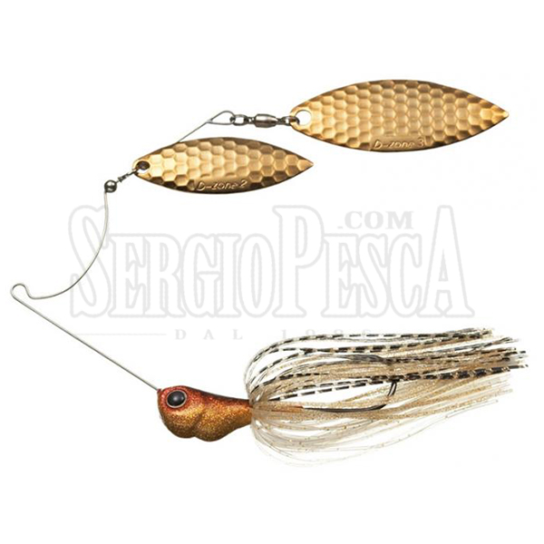 Evergreen’s D-Zone DW is the variation DW (Duoble Willow), that is different from TW (Tandem Willow) since it has willow leaf-type blade in both rigs even in idifferent sizes. This lure increases the vibrations, because its two leafs, interfere one with the other, attracting big prey. It has an innovate shape. It has a perfect arrangement  of swim for all speed. Evergreen creates a perfect wirebait. The D-Zone works perfectly when you retrieve it fast, slow rolling while falling, a middle speed, or beating with the submerged obstacles, practically in every condition! The D-Zone DW is a high quality spinner bait, in terms of aesthetic and material. The sinuous movement, the vibrations emited by the two bearings, the wonderful range of colours and the great skirt, won't go unnoticed by black bass, pikes, chubs. The head is very compact and detailed, with tridimensional eyes, increase the retrieve in depths, while the titanium line gives good vibrations and an excellent strength. D-Zone DW is one of the most appreciated spinnerbaits in the world. Not by chance, it's the favorite bait by worldwide top anglers.
