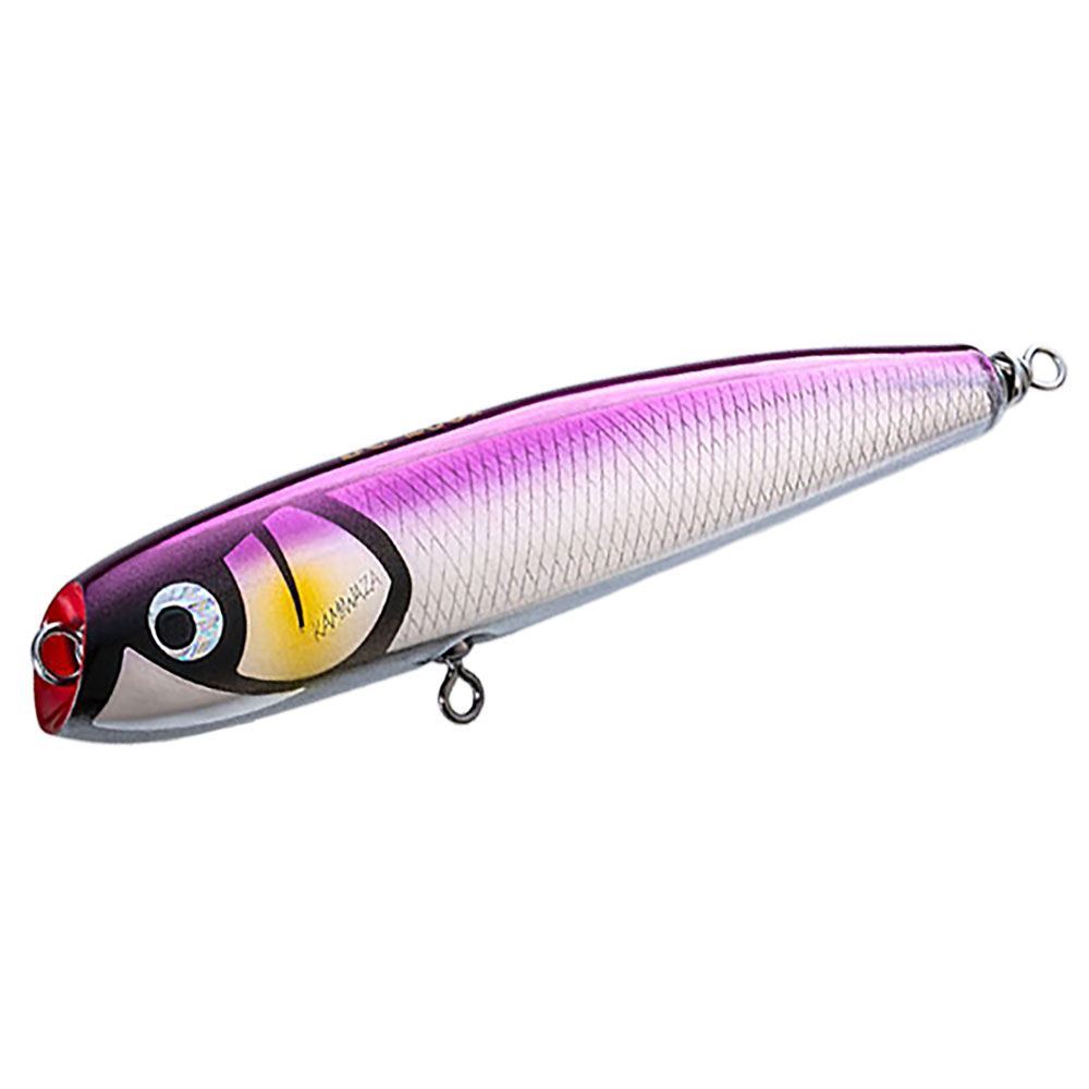 Il DC-200F della Kamiwaza è una particolare grande esca topwater di altissimo livello, progettata per la pesca ai grandi predatori marini e pensata per offrire un'azione più reattiva, precisa e incisiva anche nelle condizioni più difficili. Questo modello nasce dall'evoluzione del celebre DECO MASA II, dal quale eredita la qualità costruttiva giapponese, arricchita da uno speciale tuning a taglio sulla testa che ne migliora sensibilmente il nuoto e la risposta in acqua. Il taglio diagonale frontale crea una vera e propria forma di "paletta", permettendo all'esca di "prendere acqua" immediatamente anche con movimenti minimi della canna, generando una traiettoria a S estremamente stabile e naturale. Questa caratteristica consente al Kamiwaza DC-200F di sviluppare un'azione secca, pulita e altamente reattiva, risultando micidiale su pesci apatici o in condizioni di bassa attività predatoria. Grazie alla sua lunghezza di 200 mm e al peso ben bilanciato di circa 90 grammi (106 gramma con split ring e ancorette), il DC-200F garantisce ottime prestazioni di lancio e un controllo totale dell'esca durante l'azione di pesca, sia con recuperi lenti e tecnici sia con movimenti più decisi. È un artificiale ideale per insidiare GT, Ricciole, Tonni e grandi pelagici, sia dalla barca sia in situazioni costiere selezionate. La struttura interna con armatura passante da 1.8 mm assicura massima resistenza e affidabilità durante i combattimenti più impegnativi, e si consiglia il montaggio con ancorette ST-66 misura 3/0 e split ring #7 o #8 consente un'armatura robusta e performante.
