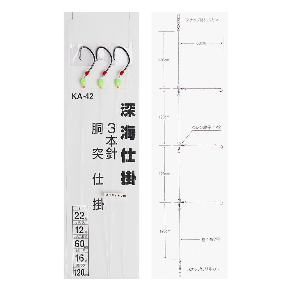 Il Deep Sea Shikake "3 Hooks" della Suteki è un teminale pronto all'uso per il bolentino di profondità. Questa versione a 3 ami, è stato prodotto con materiali di alta qualità, con ami circle, perline e girelle a tre vie, con una distanza di 1.20m tra le girelle. Ogni terminale ha una lunghezza di 60cm e per collegare lenza madre e piombo, il terminale è dotato di girelle con moschettone.
