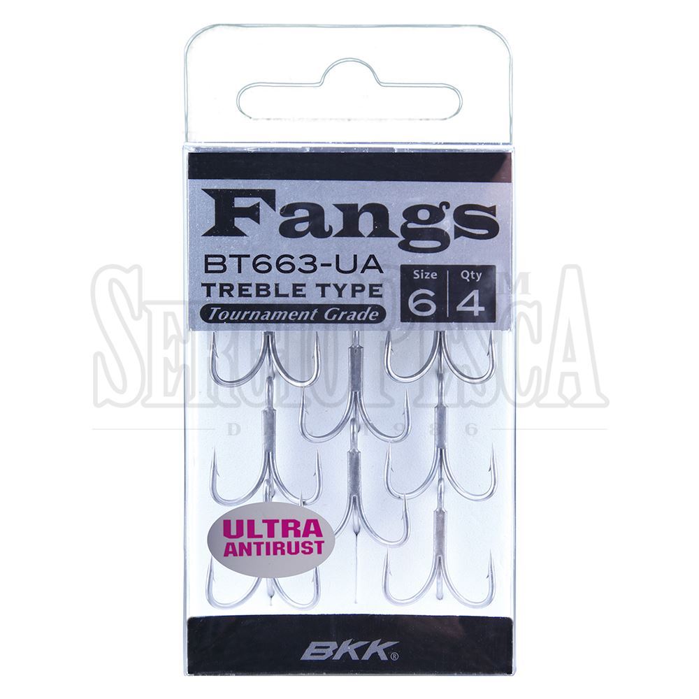 BKK's Fangs BT662-UA is a 3X treble hook specially designed for use in saltwater with the modern PE for instantaneous penetration. This treble hook is treated with the "Super Slide" coating for sup...