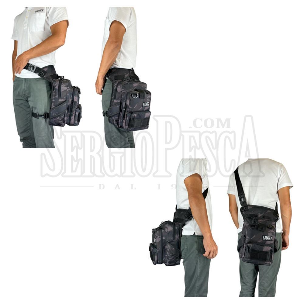 Il Foot Eging 3G della L.S.D. Designs è un marsupio da gamba studiato appositamente studiato per l'Eging Game. Utilizzabile anche a tracolla, presenta una tasca frontale che si apre completamente, consentendo un rapido cambio dell'Egi! Questa tasca frontale consente di trasportare fino a 10 Egi della misura 3.5 mentre, nel vano principale, è possibile inserire fino a 2 custodie porta Egi (vendute separatamente), così da poter portare con se un gran numero di esche. Frontalmente presenta una piccola taschina che consente di inserire piccole bobine di filo e minuteria varia mentre, laterlamente, sono presenti due comodi porta canna che possono essere utilizzati anche come porta grip/raffio.