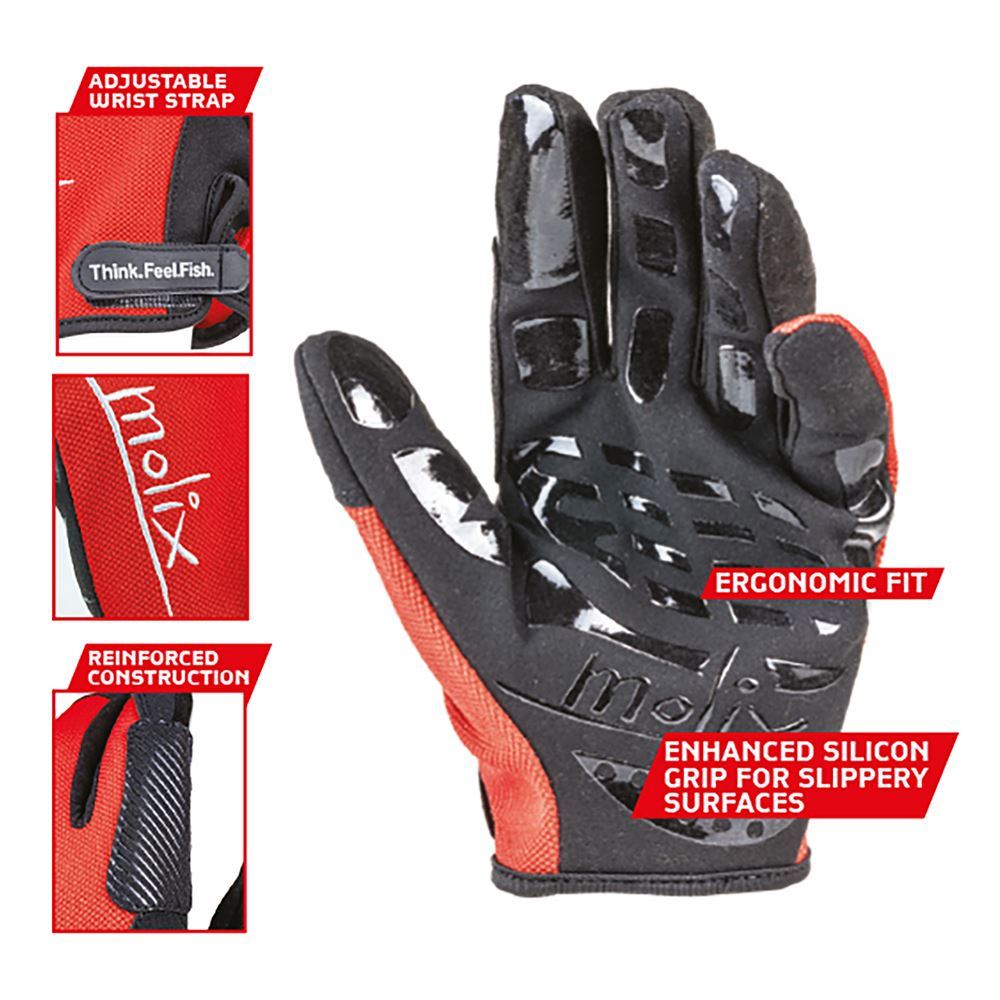 L'High Grip Glove della Molix sono guanti tecnici da pesca progettati per affrontare la cattura di grandi predatori, ideali per spinning pesante, popping e shore jigging. Realizzati con materiali di alta qualità e tessuti traspiranti, garantiscono comfort elevato anche durante lunghe sessioni di pesca in mare. I rinforzi in silicone sul palmo offrono una presa salda e sicura sulla canna da pesca, anche in condizioni di bagnato, migliorando controllo e sensibilità durante l'azione. Questi guanti da pesca Molix assicurano un'eccellente resistenza all'usura e sono studiati per proteggere la mano durante lanci energici e combattimenti intensi con pesci di grossa taglia. Il design ergonomico e moderno li rende un accessorio indispensabile per ogni appassionato di pesca sportiva in mare. Perfetti per chi cerca guanti da pesca resistenti, antiscivolo e performanti, gli High Grip Glove rappresentano la scelta ideale per pescatori esigenti.