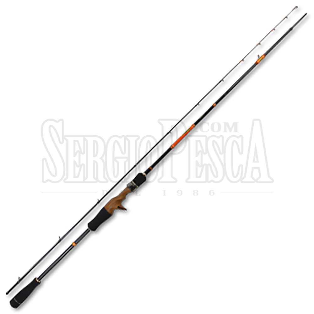 La Izanai Stick IS-66S della Hayashi è una canna da pesca di alta qualità specifica per la pesca al calamaro in verticale dalla barca. Hayashi è un marchio giapponese specializzato nella progettazione e produzione di attrezzatura da pesca per la ricerca dei cefalopodi. La Izanai Stick è leggerissima, super sensibile ed estremamente maneggevole. Tutto questo grazie all'utilizzo di materiali all'avanguardia di alta qualità: fusto in carbonio ad alto modulo con cimino solido e legature arancioni che consentono l'utilizzo anche durante la notte; micro anelli Fuji SiC-S montati a spirale per il massimo della leggerezza e scorrevolezza; portamulinello esclusivo Fuji con inserto in legno e contatto diretto con il fusto; impugnatura splittata in EVA nero ad alta densità. A livello estetico la Izanai Stick è molto particolare, con inserti di colore arancione e oro, il portamulinello in legno e le scritte in giapponese sia nel manico che nella prima parte del fusto. Con questo modello la Hayashi ha realizzato un prodotto perfetto per chi è alla ricerca di una canna per la pesca al calamaro dalla barca molto leggera, sensibile e unica! Utilizzabile esclusivamente con piccoli mulinelli baitcasting da mare.