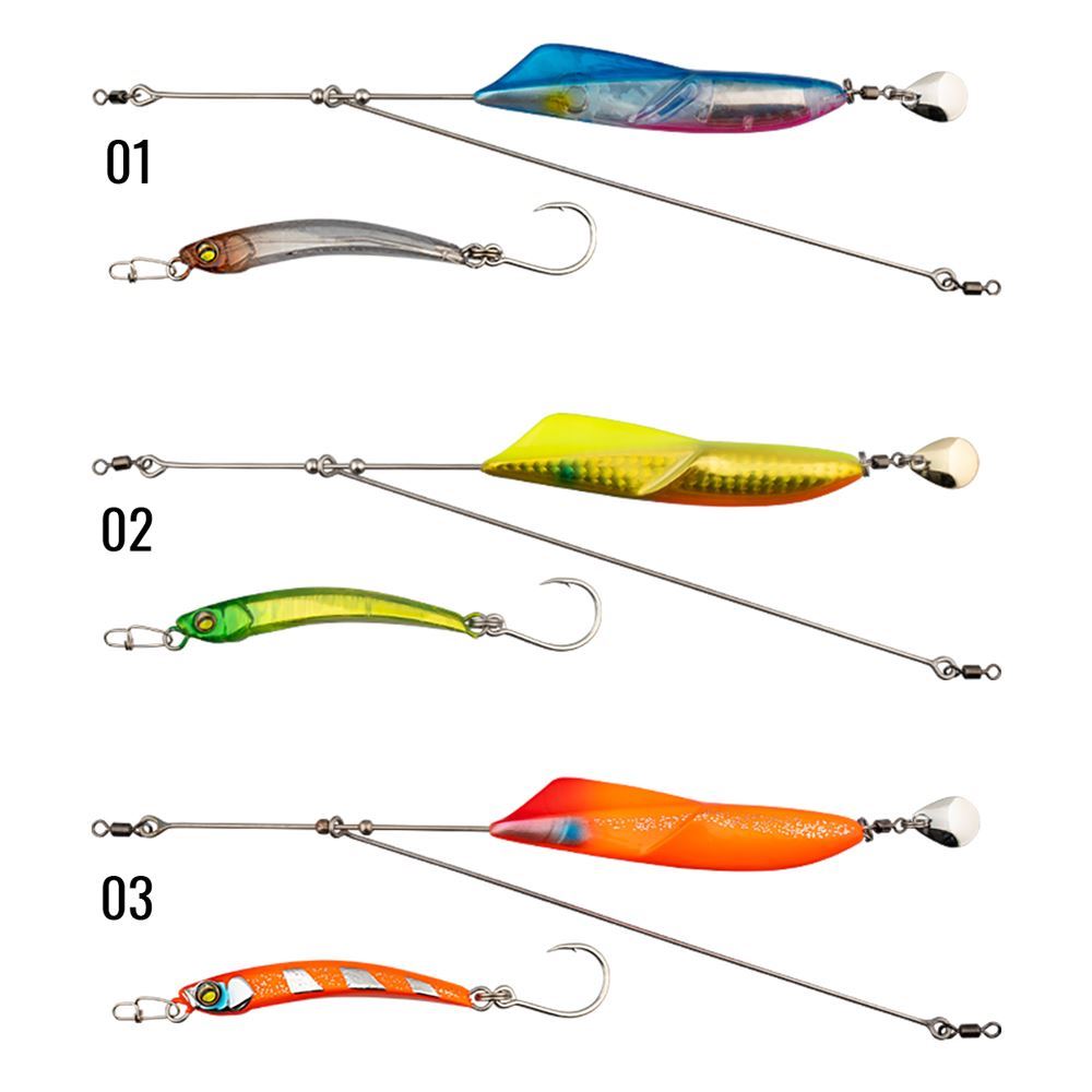 Il Jettrow Mid della Jackall è la nuova versione "Mid" da 35 e 45 grammi del Jettrow! Come per la versione classica, anche il nuovo Jettrow Mid nasce per poter far raggiungere lunghe distanze a piccole esche artificiali che normalmente non potrebbero mai arrivare a 80/100 metri dalla riva. E' il modello perfetto per quando ci sono piccoli pesci, ma non ci sono schizzi o bollate sulla superficie in modo da attirare direttamente i pesci che si trovano nello strato intermedio. Disponibile in due misure, quello da 35 grammi è ideale per la pesca da spiggia o dighe basse, mentre il 45 grammi quando in situazioni di forte vento, condizioni meteorologiche avverseo dighe alte. La sua azione affondante consente di farlo affondare alla profondità desiderata e poi iniziare il recupero per farlo avvicinare alla superficie e, grazie alle due alette laterali, riesce a galleggiare e a muoversi facilmente sul pelo dell'acqua. Il potere attrattivo viene aumentato anche dal blade posto nella parte posteriore, mentre il piccolo minnow senza paletta con amo singolo ("Jettrow Buddy") è collegato con 140cm di 20lb di fluorocarbon. Ovviamente si potrà customizzare il Jettrow sostituendo l'esca artificiale con altre esche diverse.