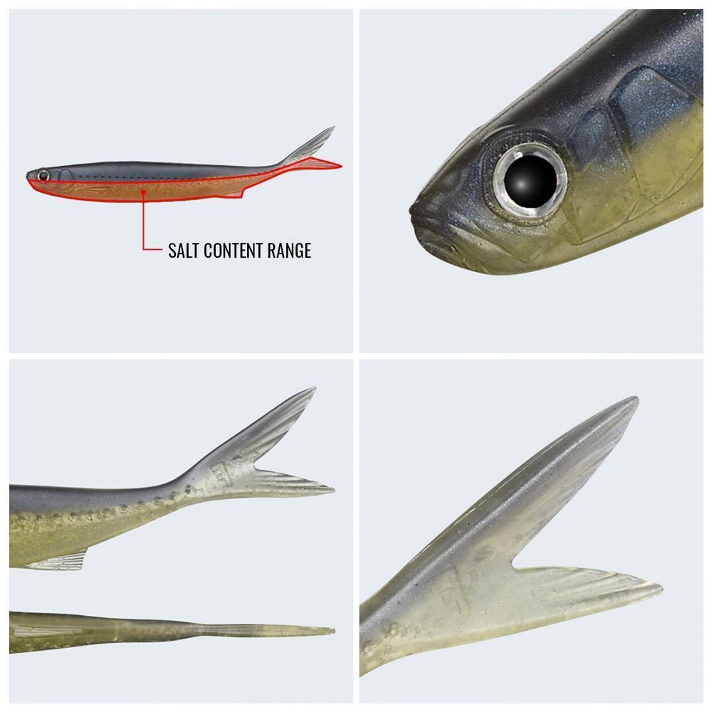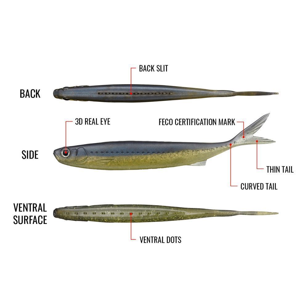 - Materiale soffice ma resistente: con texture "gommosa" che favorisce la mobilità e trattiene bene l'amo. Resistente a jerkate e passaggi tra le erbacce;