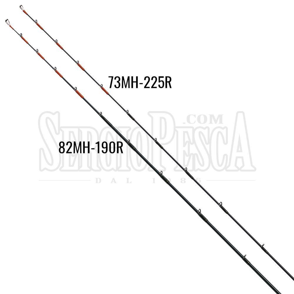 - 73MH-225R: la più versatile della serie, possiede un'azione progressiva con un'ottima sensibilità di punta. Grazie alla sua lunghezza di 2.25m, può essere utilizzata per il bolentino moderno, la pesca con il sabiki e al calamaro in verticale, anche con terminali lunghi. E' adatta anche all'utilizzo di piccoli mulinelli elettrici;