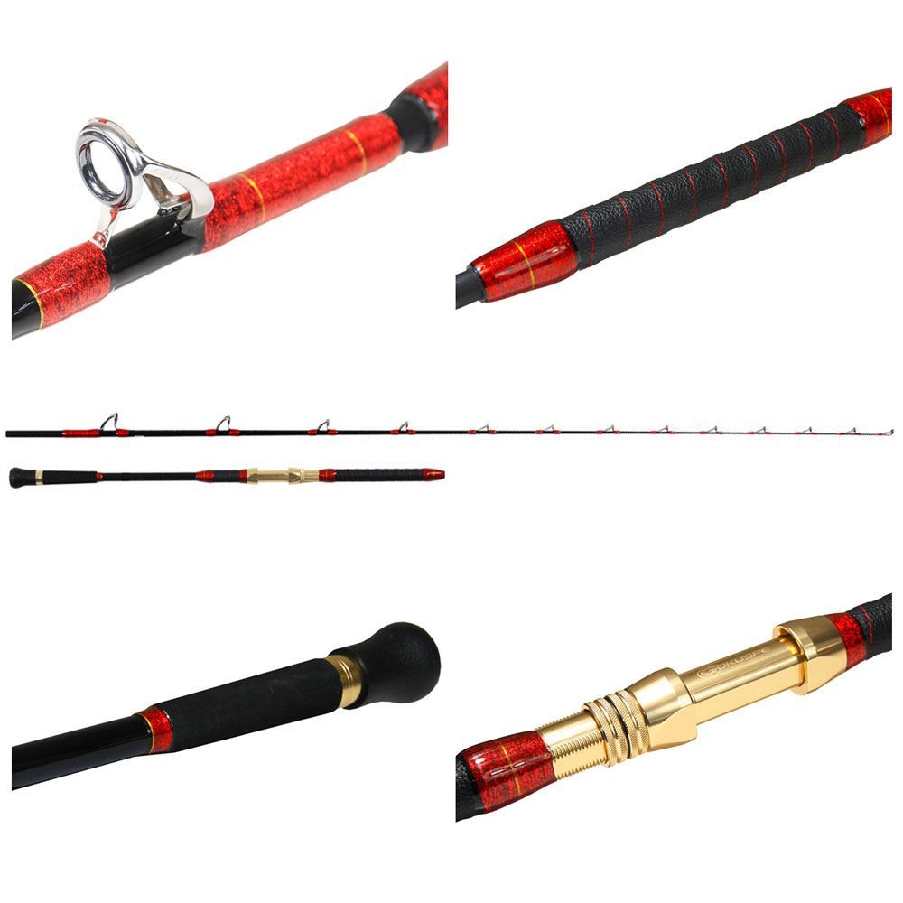 La Mugen Pure Fune Hiramasa Otoshikomi Limited della Gokuspe è una canna da barca per mulinello elettrico, studiata in Giappone per la tecnica denominata "Otoshikomi" alla ricerca di grandi pelagici. Progettata per offrire massima sensibilità e potenza, è dotata di un fusto glass solid, con taper accuratamente ottimizzato, che permette di avvertire anche le tocche più delicate, garantendo al tempo stesso una robusta riserva di potenza capace di gestire le violente fughe di grandi predatori, come la Ricciola. Dotata di rear grip allungato per un appoggio stabile sotto il braccio e di crociera per il combattimento con supporto sul ventre, ogni dettaglio è studiato per assicurare praticità, controllo e affidabilità, rendendola una canna professionale pensata per la cattura di grandi prede come Ricciole, Dentici, Cernie, ecc...