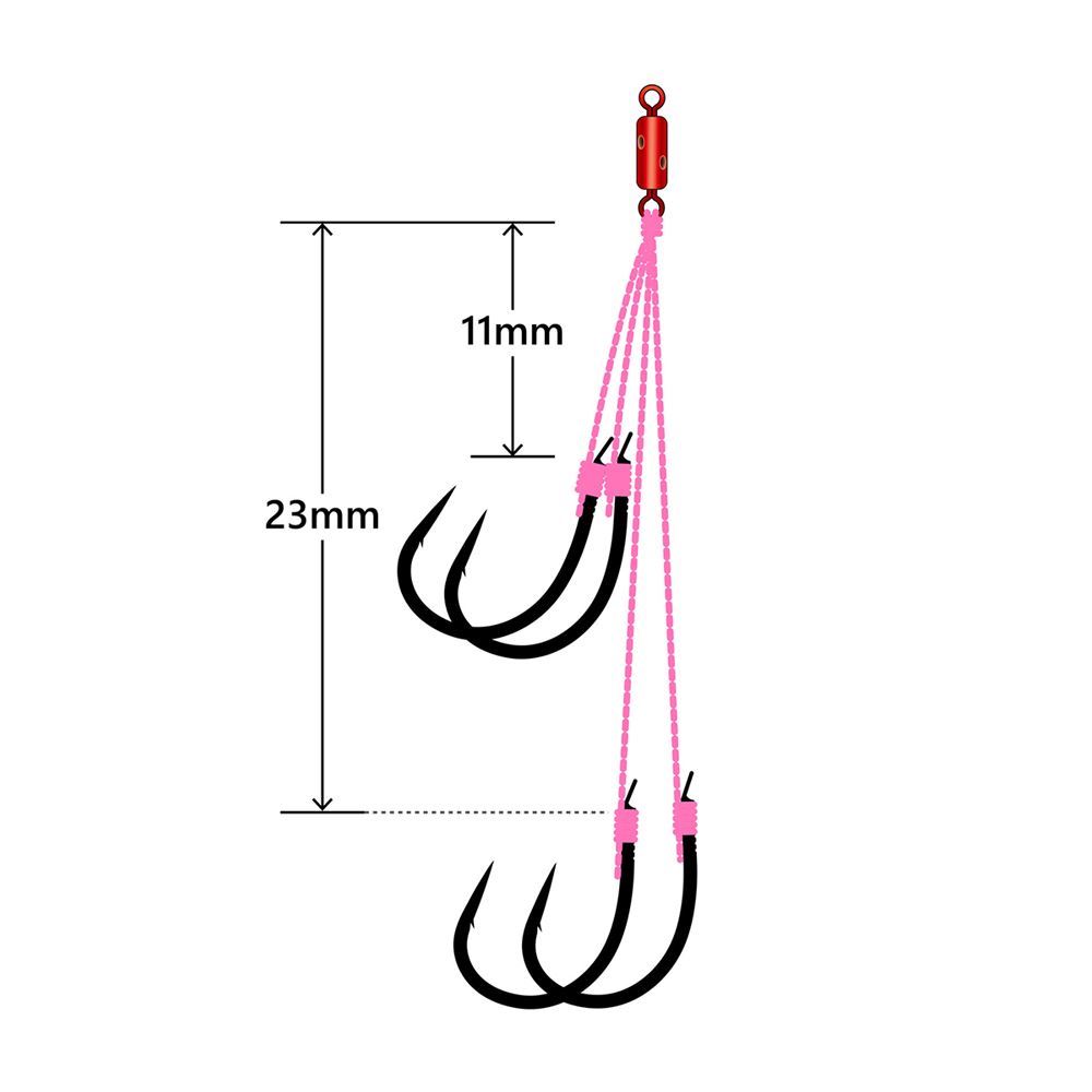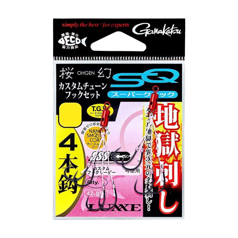 L'OhGen Custom Tune Hook Set Super Quick (4 hooks) della Luxxe è la versione a 4 ami di questo sistema da Tai Rubber, studiato per massimizzare le probabilità di cattura grazie alla configurazione "Jigoku-zashi", con un doppio amo sia sopra che sotto. Questo particolare assetto consente ferrate multiple e immediate, aumentando significativamente le chance di aggancio anche su attacchi più timidi. Costruito con materiali premium come ami Tournament Grade Wire, con micro ardiglione e Nano Smooth Coat, che garantiscono elevata resistenza e penetrazione. Il sistema con collegamento diretto alla girella Custom Swivel SSH migliora la risposta e la tenuta durante il combattimento. Sulla girella sono presenti dei fori per inserire le codine (da acquistare separatamente) Perfetto per pescatori esigenti che cercano massima efficacia nel Tai Rubber.