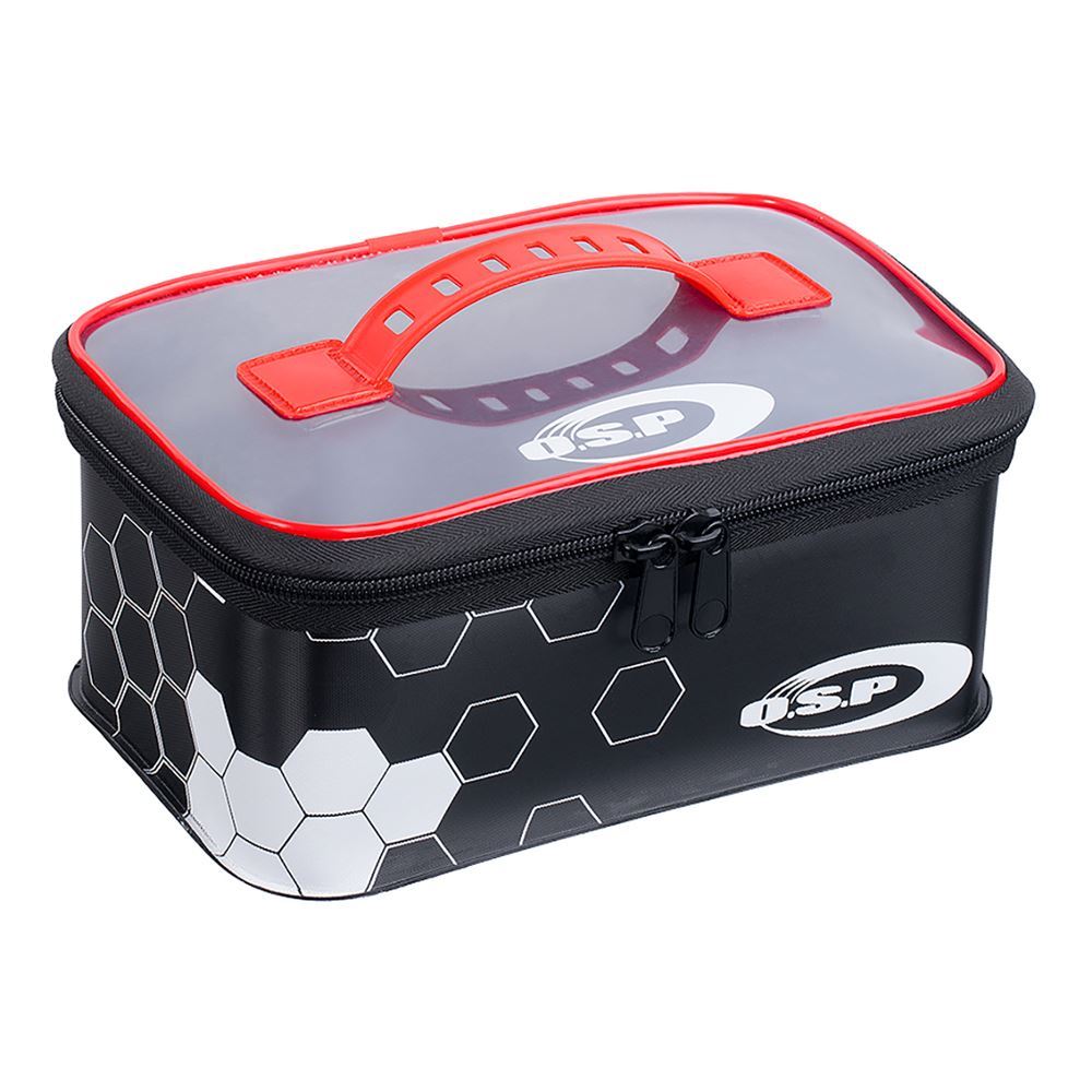 La O.S.P. Tool Box-R è una piccola borsa in EVA molto versatile. La Tool Box-R, infatti, è utile per inserire bustine di esche siliconiche, fili e altre piccole custodie per piccoli oggetti. Il coperchio è dotato di un tappo interno nero rimovibile, quindi se si rimuove il tappo interno e lo si usa con il coperchio trasparente, si potrà vedere il contenuto a colpo d'occhio, invece se lo si usa con il tappo nero, proteggerà il contenuto dalla luce solare diretta anche quando la scatola è posizionata sotto il sole cocente. Il design originale prevede una colorazione nera, con motivo a nido d'ape e logo O.S.P. bianco.