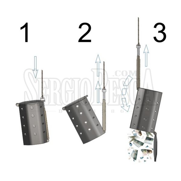 Il Pasturatore Barca della Stonfo è un pasturatore da barca preciso ed efficiente munito di un sistema di regolazione della forza di apertura. Riempire di pastura, sardine etc.etc., bloccare il coperchio e calarlo dalla barca con un cordino alla profondità desiderata. Tirare bruscamente il cordino per permettere l’apertura e lo scaricamento del pasturatore.