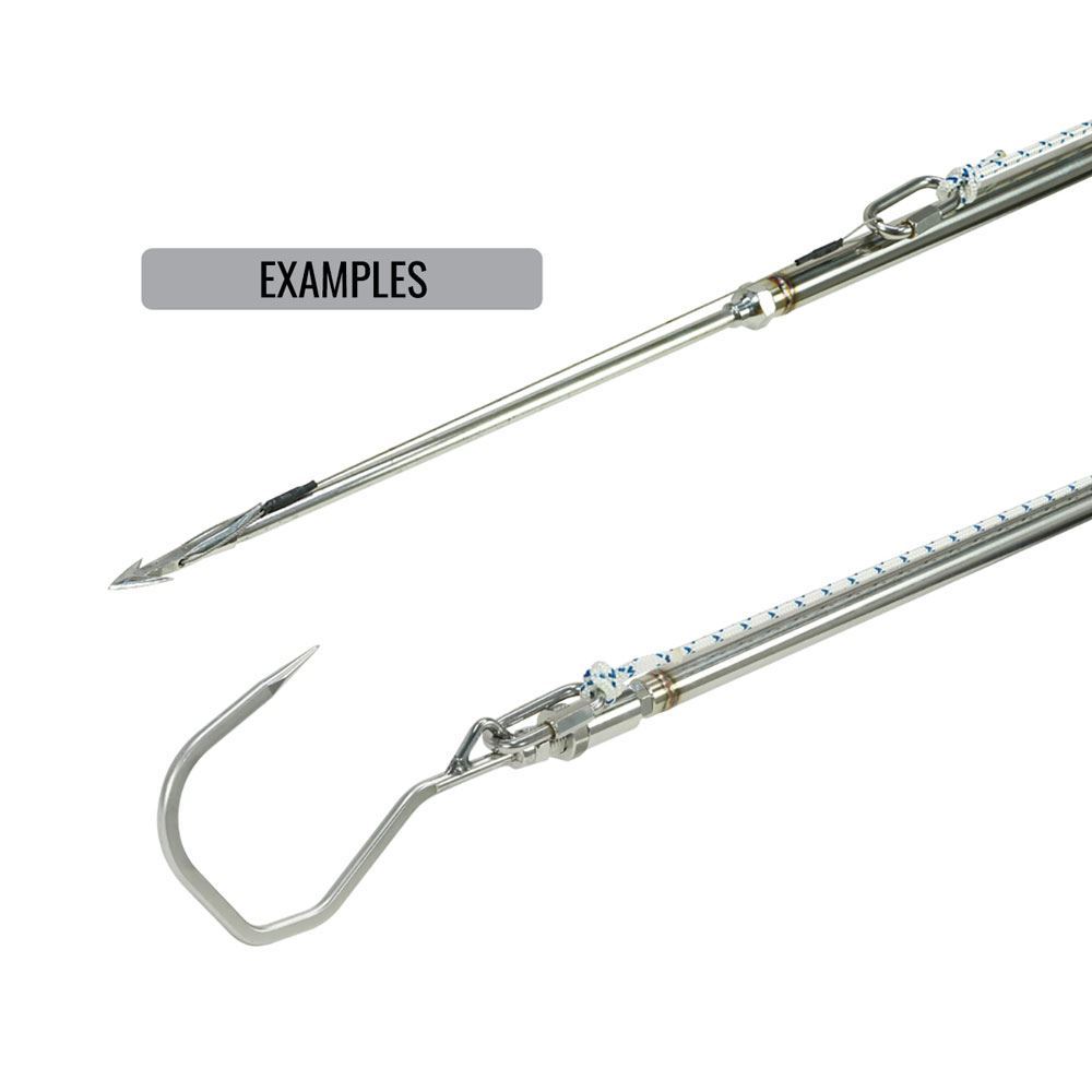 1) E' dotato di superfici piane per l'utilizzo di una chiave, che consentono il serraggio con doppio dado. Questo impedisce che il raffio si sviti o si stacchi dal manico.