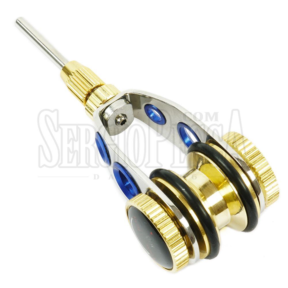 Il PR Cool Knotter M della Vanguard è un pratico accessorio che permette di eseguire un perfetto nodo PR tra trecciato e nylon/fluorocarbon. Il PR Cool Knotter è prodotto da una nuova azienda giapponese, la Vanguard, la quale propone questo nuovo knotter di altissima qualità per la produzione di nodi PR. La funzione di questo knotter è molto semplice, infatti in pochi minuti sarà possibile realizzare il nodo. Grazie al suo peso di 62 grammi, sarà in grado in eseguire nodi perfetti utilizzando trecciati PE dalla misura #0.8 alla #5! Su uno dei due lati presenta la frizione per poter regolare la fuoriuscita del trecciato a seconda del diametro di PE utilizzato. Completo di custodia in finta pelle ed istruzioni (in giapponese, ma molto facile da capire grazie alle immagini presenti).