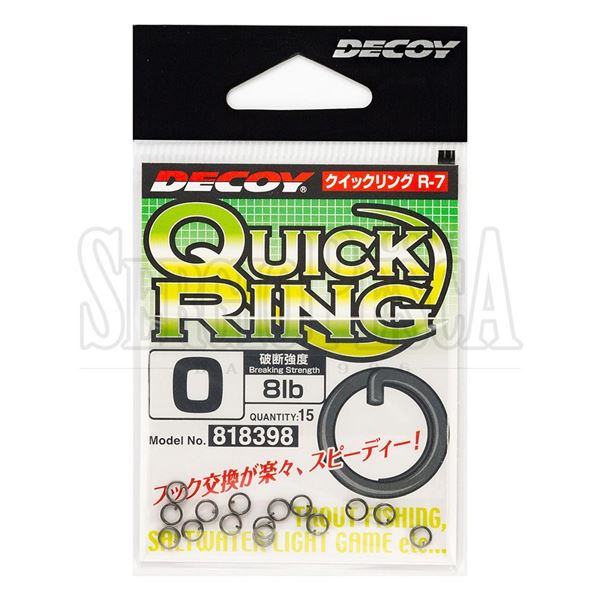 Il Quick Ring R-7 della Decoy è uno split ring molto particolare, studiato appositamente per cambiare in maniera rapida l'amo o l'ancoretta, senza l'utilizzo delle pinze. Perfetto per tutte le tecniche leggere, come il Trout Area o il Light Rock Fishing, potrà essere utilizzato sia per piccole esche rigide, sia per gli spoon. La finitura nera NS ne esalta la resistenza.