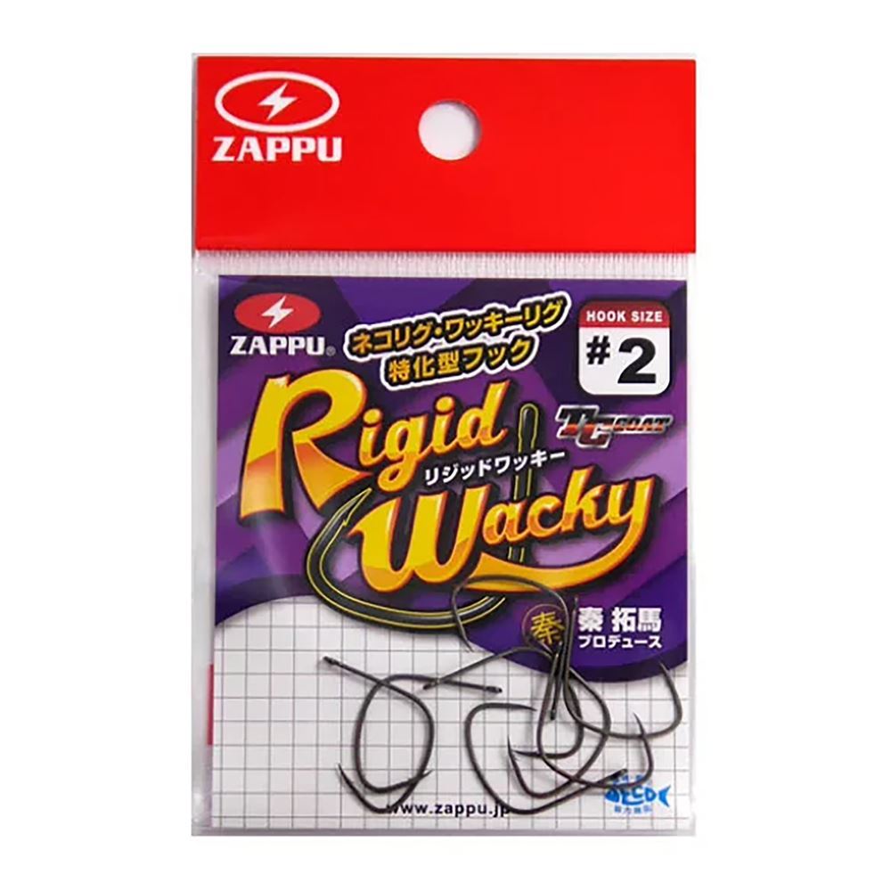 Il Rigid Wacky della Zappu è un amo per Neko Rig dedicato esclusivamente al light e ultra-light tackle, da utilizzare con fili tra 2,5 e 5 lb. Prodotto con materiali di alta qualità, come tutti i prodotti del marchio Zappu, grazie al long flat shank e alla particolare curvatura stretta, racchiude tutto il know-how maturato da Zapp nella progettazione di ami. La combinazione di un worm sottile e di un amo a filo fine esalta al massimo la facilità d'uso, garantendo: alta capacità di mantenere l'esca in posizione, riducendo il rischio di strappi; stabilità e controllo che limitano il gioco dell'amo, supportando perfettamente le manovre delicate tipiche del light tackle.