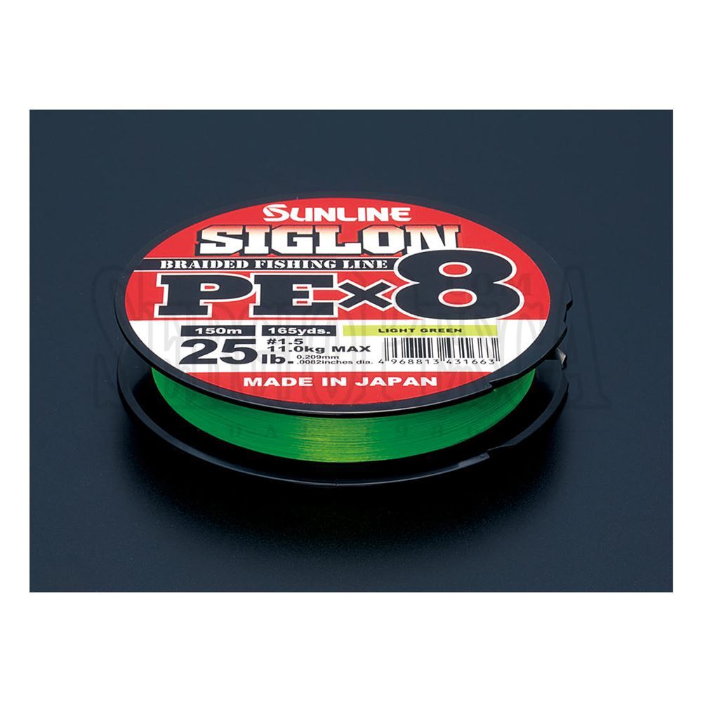 Il Siglon PE X8 "Light Green" della Sunline è la versione di colore "Light Green" di questo PE ad 8 capi dall'ottimo rapporto qualità/prezzo. Si tratta di un trecciato PE liscio del tipo "EX-PE" (Excellent PE) composto da 8 capi, assemblati utilizzando il metodo di produzione micro-pitch. La struttura perfettamente circolare e ben bilanciata creata dall'intreccio degli 8 capi riduce drasticamente la resistenza degli anelli, così da consentire un lancio fluido con un rumore ridotto. Questa versione "Light Green" è perfetta per lo Spinning, da quello più leggero a quello medio/pesante.
