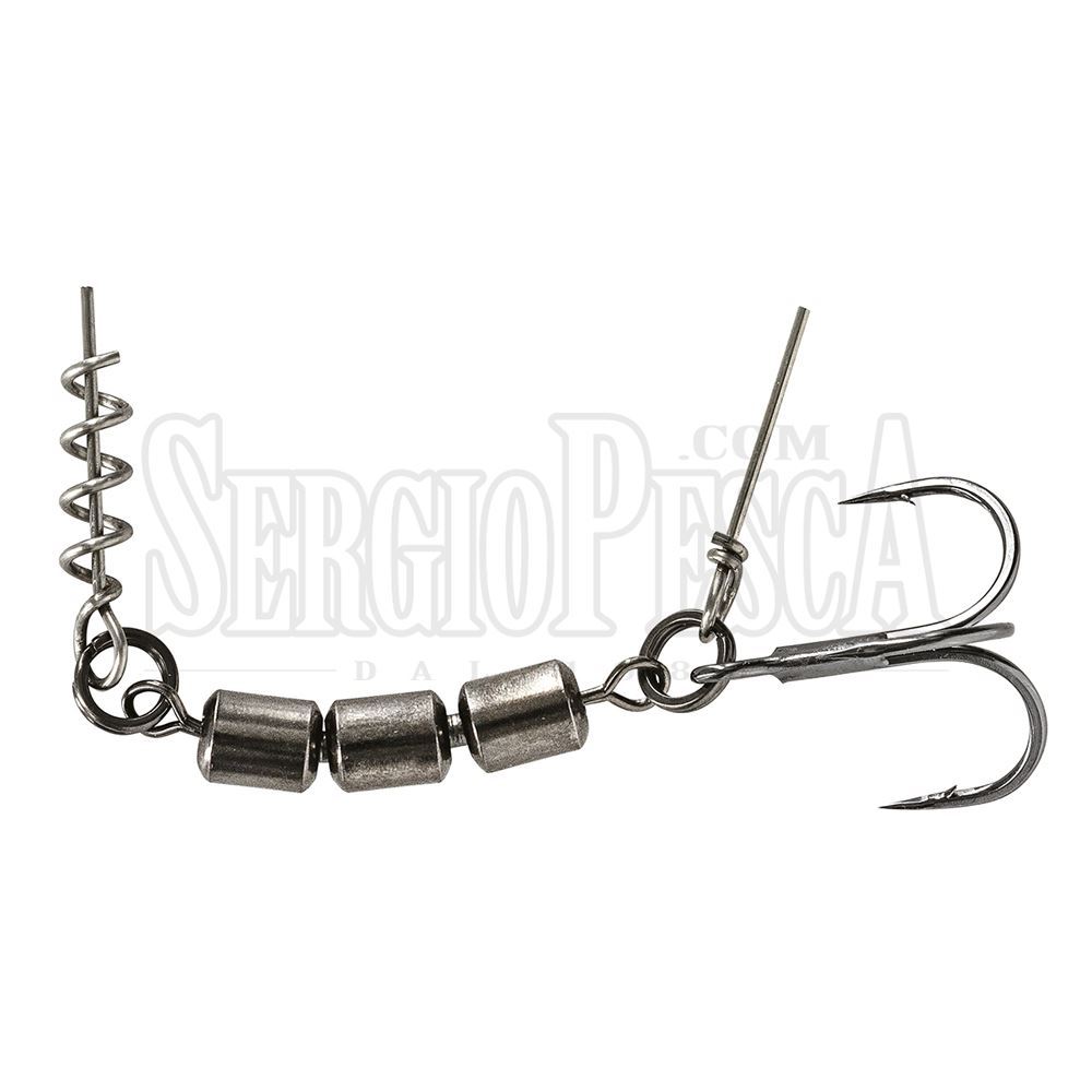 Il Soft Bait Stinger Single Hook della Molix è un rig pronto all'uso per armare con 1 ancoretta #4 le esche in gomma di dimensioni dai 6.5 cm ai 12 cm di lunghezza. Mediante la vite sarà semplice assicurarlo alla parte frontale dell'esca ed il pin in acciaio permetterà di fissarlo alla pancia o alla schiena dell’artificiale. La tripla girella garantisce la mobilità necessaria per adattare il sistema alle diverse forme delle esche e riduce il rischio di slamatura durante le fasi di combattimento.