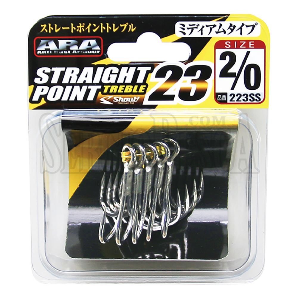 La Straight Point Treble 23 della Shout! è un'ancoretta a punta dritta per il montaggio di esche artificiali per la pesca in mare. L'eccellente qualità produttiva ed al trattamento superficiale denominato ARA (Anti Rust Armor), garantisce una prolungata resistenza al sale e, quindi, alla corrosione. Perfetta per il montaggio su artificiali di misura media per la pesca alla spigola, ma anche su esche voluminose come popper e stickbait per la pesca dalla riva e dalla barca. La sua punta dritta affilata consente, mediante l'utilizzo di un PE resistente ed a bassa elasticità, di ferrare facilmente e mantenere salda la preda!