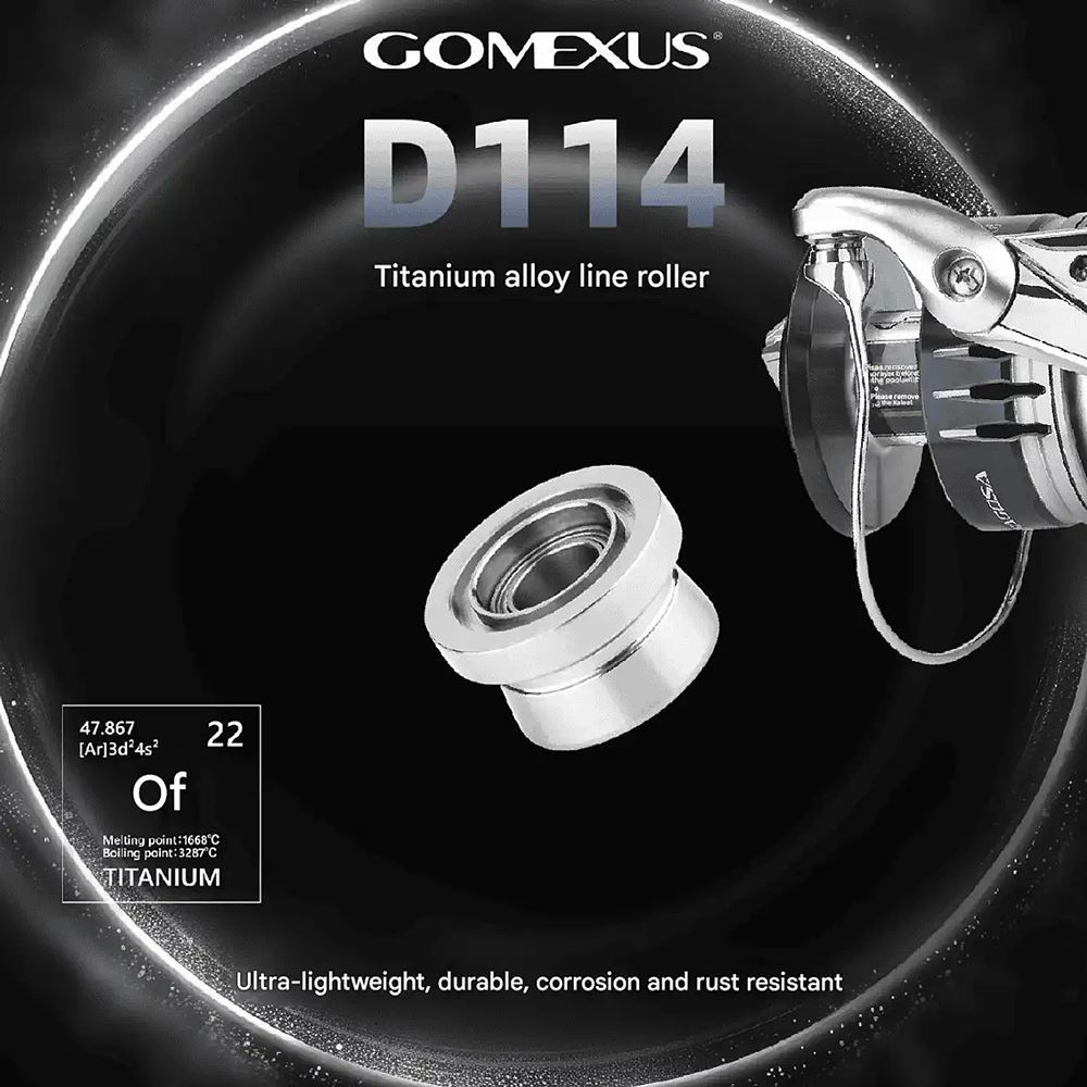 Il Titanium Line Roller for Shimano SW 8000-30000 della Gomexus è il rullino guidafilo in titanio per mulinelli Shimano SW 8000-30000. Disponibile sia nella classica colorazione Silver (argento), sia nella particolare colorazione Aurora, sono realizzati in lega di titanio con un sistema avanzato di cuscinetti integrati, che garantiscono resistenza superiore e leggerezza, rendendoli ideali per l'uso in ambiente marino, risultando resistenti alla corrosione.