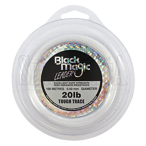 Il Tough Trace della Black Magic è un nylon polivalente molto resistente sia all'abrasione, che al nodo, ma anche alla crimpatura. Molto chiaro, è stato prodotto da copolimeri giapponesi secondo le richieste di Black Magic, così da poter dichiarare un diametro molto preciso. La confezione è molto comoda, e può essere utilizzata per riporre la bobina del Tough Trace una volta finito l'utilizzo.