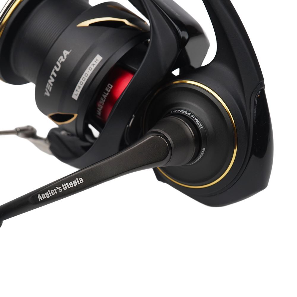 Il nuovo Ventura è dotato di una manovella da 55 mm, una misura perfettamente bilanciata che garantisce una rotazione fluida anche con un semplice movimento di polso e offre una sensibilità superiore nel percepire variazioni di corrente rispetto alla classica manovella da 60 mm. Questa lunghezza ottimizzata si abbina perfettamente all'elevata rigidità del corpo del mulinello, assicurando stabilità e totale affidabilità anche durante i combattimenti più impegnativi. A completare la configurazione troviamo un pomello RCS Power Light Knob M Long di SLP Works, progettato per offrire un grip eccellente: non scivola nemmeno in presenza di carichi improvvisi e permette al pescatore di mantenere sempre un controllo fermo e sicuro, migliorando sensibilmente la qualità dell'azione e la gestione della potenza.