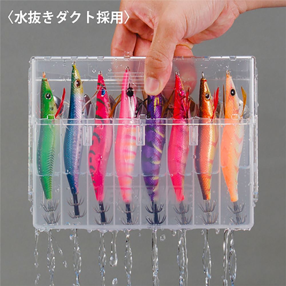 Il Versus Wave ES2051 Vertical Egi Stocker della Meiho è un innovativo porta totanare Made in Japan. Grazie al pratico sistema di apertura-chiusura può essere riposto sia aperto all'interno di un marsupio così da rendere veloce il cambio della totanara, oppure può essere riposto chiuso all'interno di una borsa a tracolla (come da foto). Prodotto con i migliori materiali giapponesi, la Vertical Egi Stocker rappresenta un prodotto innovativo e straordinario per tutti gli amanti dell'Eging Game. Inoltre fa parte della serie Versus Wave, la quale comprende tutta una serie di scatolette ideali per la pesca in mare e pronte urti, collisioni, ecc... Una scatoletta pronta a tutto! Può contenere fino a 8 totanare da EGI 3.5 e può essere contenuta nella VS-E6552.